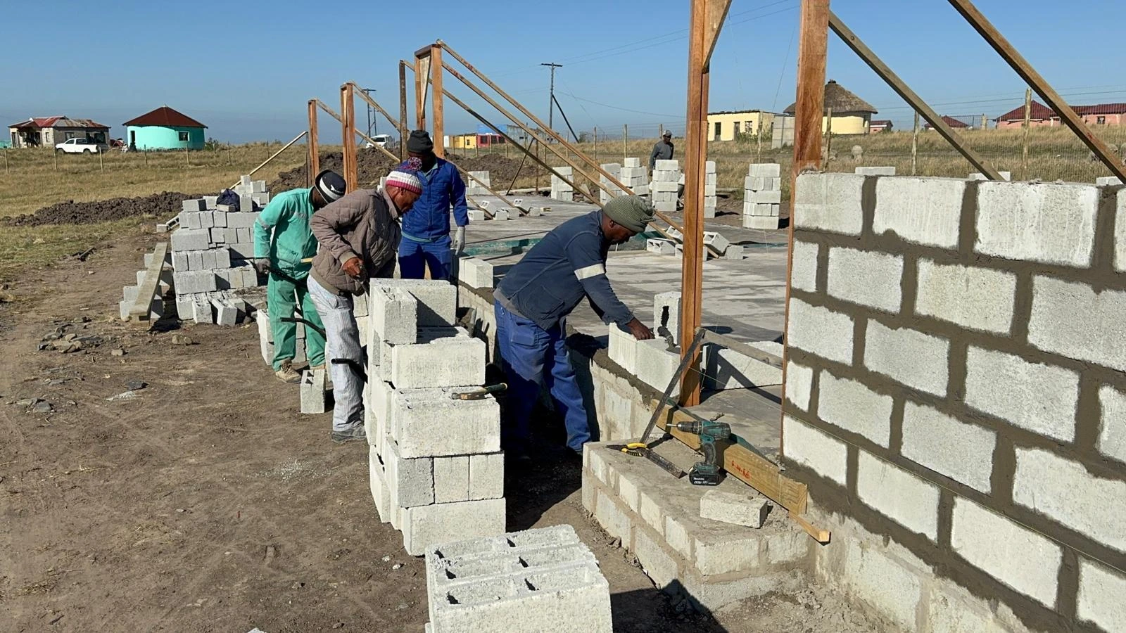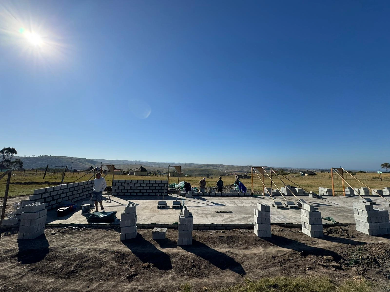 Gemeinsam anpacken: Das lokale Bau-Team errichtet Stein für Stein die neue Schule – getragen von Gemeinschaft und Engagement.