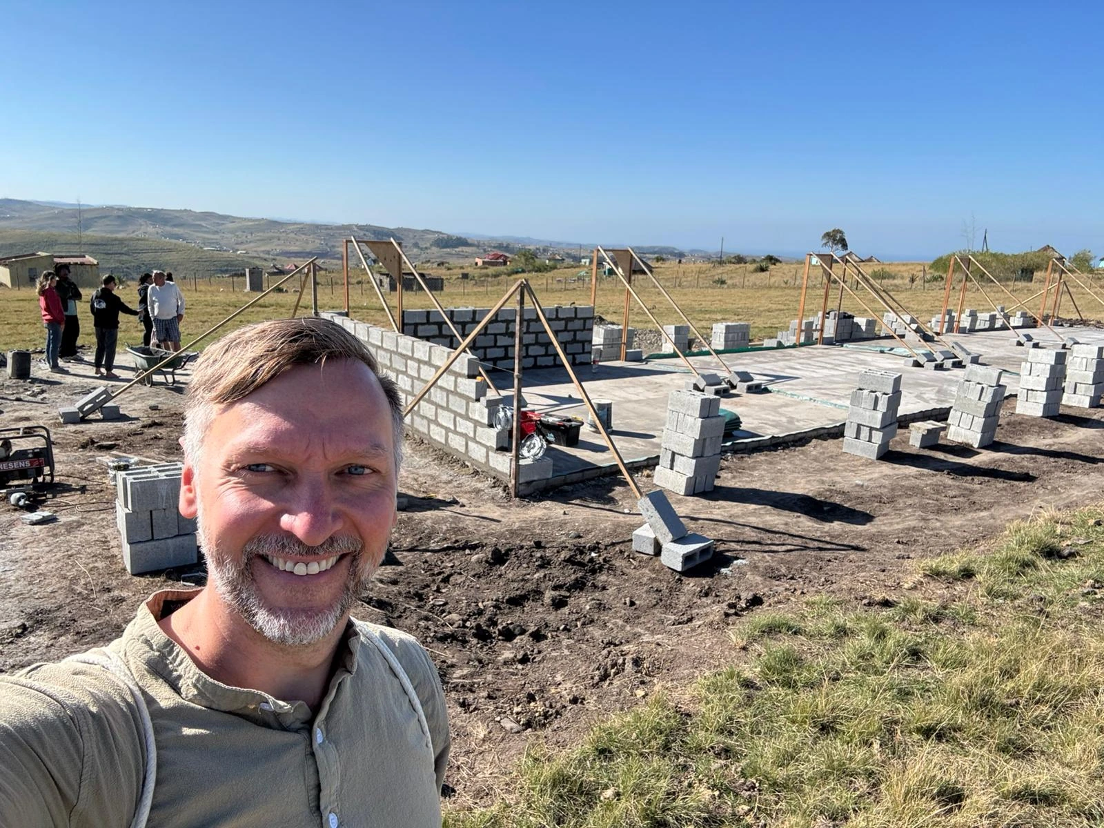 Bau der ersten Mauern: Carsten Herold, Geschäftsführer von HEROLÉ und uzinzo, war zum Startschuss vor Ort in Qhogi Village.